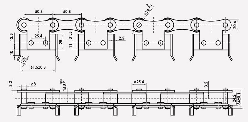 不锈钢链条、破断载荷40KN、也可提供自润滑的型号链条;