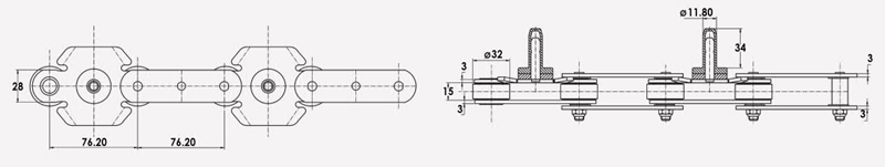 不锈钢链条、侧弯链条、自润滑链条、破断载荷45KN;