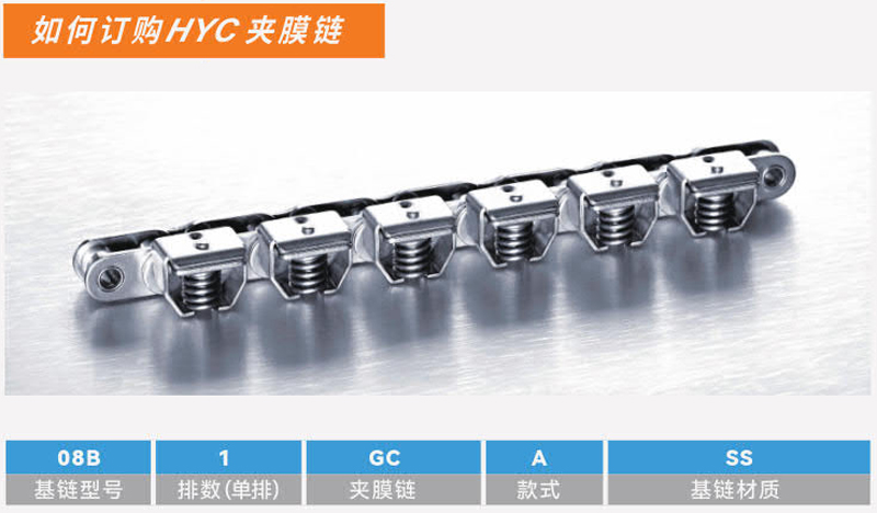 HYC夹膜链的不锈钢弹簧采用日本进口材料制造,如终确保链条的夹力;